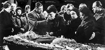 | Похороны Леонида Ильича Брежнева, ноябрь 1982 года. У гроба — зять генсека генерал-полковник МВД Юрий Чурбанов, дочь Галина, вдова Виктория Петровна и другие |