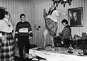 Между прочим, Александр рассказал историю фотографии Галины, отплясывающей на столе с полузадранной юбкой. Как-то он познакомился с английскими корреспондентами, те взяли шампанское и отправились брать интервью у дочери Брежнева. После разговора она напилась и полезла на стол. Так что пасынок поневоле спровоцировал отталкивающую сцену и до сих пор чувствует себя виноватым...