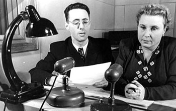 | Юрий Левитан и Ольга Высоцкая много лет вместе вели прямые эфиры Всесоюзного радио. Именно они в ночь на 9 мая 1945 года объявили о капитуляции фашистской Германии |