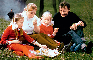 | Василий Макарович с третьей женой актрисой Лидией Федосеевой-Шукшиной и дочерьми Машей (слева) и Олей |