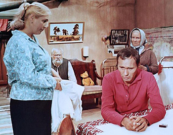 | «Вася приходил ко мне, просил: «Спаси меня от этой Лидки, освободи. Вцепилась – не могу от нее избавиться». Федосеева и Шукшин в фильме «Калина красная», 1973 год |