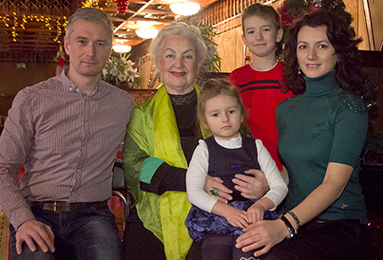 | Лидия Александровна в свой день рождения 13 января нынешнего года с сыном Денисом, внуками Алевтиной и Тимофеем и невесткой Александрой |