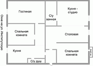3 комн., 2/8, 70/42/9, h = 3,2 м.,