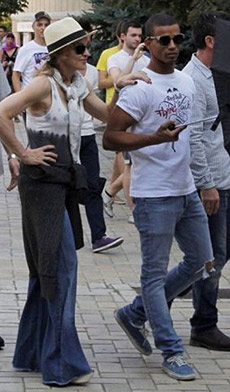 | Киев, по которому Мадж передвигалась в сопровождении 24-летнего танцовщика и бой-френда Брахима Заибата, звезде «в целом понравился» |