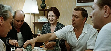 | В роли Николая Ивановича Дубинского с Алексеем Глазыриным, Евгением Леоновым, Ниной Ургант и Всеволодом Сафоновым в культовой картине Андрея Смирнова «Белорусский вокзал», 1977 год |