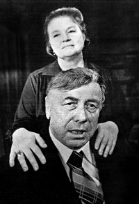 | С супругой актрисой Надеждой Каратаевой. «Надежда Юрьевна — замечательная женщина, бывшая фронтовичка, справедливая, честная, талантливая» |