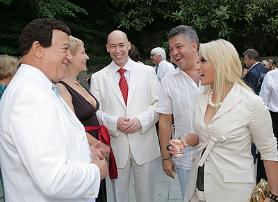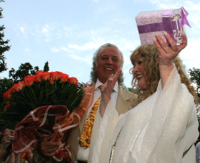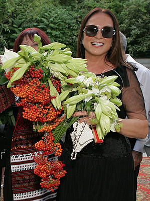 ![]() Аллу Пугачеву ждали с Максимом Галкиным, но старый друг лучше новых двух. Вместе с поэтом-песенником Ильей Резником Алла Борисовна прибыла в скромном серебристом «мерседесе» с крымскими номерами и преподнесла имениннице небольшую коробочку, завернутую в сиреневую бумагу с бантиком. Там лежал шикарный гарнитур — колье, серьги и кольцо из белого золота с бриллиантами (по слухам, ценой около 70 тысяч долларов). На празднике все ожидали выступления Примадонны, и она оправдала надежды. Несмотря на то, что долгие годы Ротару и Пугачевой приписывали взаимную вражду, Алла, поднявшись на сцену, сказала: «Соня, подружка моя золотая!». Затем к ней вышла виновница торжества. Обе звезды обнялись, расцеловались и прослезились. Пугачева спела песню «Приглашаю на закат», под которую Ротару закружилась в танце с сыном Русланом. Кстати, Примадонна впервые побывала на дне рождения у Ротару. Она приехала в Ялту за двое суток до торжества и поселилась в двухкомнатном номере с сауной и бассейном в элитной гостинице, выложив за это три тысячи долларов. Остальные гости жили в оскошной «Ореанде» в центре Ялты. За их номера платила София Ротару Фото УНИАН |