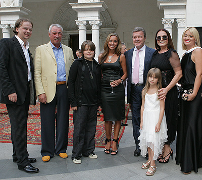 ![]() Сын Ротару Руслан, отец Алсу Ралиф Сафин (бизнесмен с дочерью-певицей вручили юбилярше вечерний наряд от Valentino), внук Софии Михайловны Толик, Алсу, Лев Лещенко, невестка Ротару Светлана и Сонечка возле именинницы, выбравшей для торжества черное открытое платье от своего любимого дизайнера Лилии Пустовит |