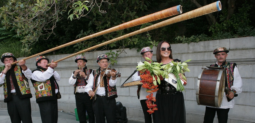 ![]() «Червону руту не шукай вечорами». Аурика Ротару устроила сестре сюрприз — привезла молдавский ансамбль «Флуераш». София Михайловна, не собиравшаяся на своем празднике петь, не смогла усидеть на месте... (Когда она исполняла молдавскую народную песню, Ян Табачник плакал навзрыд. Оказалось, эту же песню пела его покойная мама). Потом София Михайловна сбросила туфли и босиком танцевала молдавские танцы вместе со своими сестрами и братьями... Кстати, в фойе Белого зала были выставлены концертные платья Ротару, в том числе то, в котором она исполняла легендарную «Червону руту» |