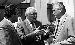 ![]() Уезжая на повышение в Москву, председатель украинского КГБ Гoлушко (второй справа) прихватил несколько вагонов с архивами этого ведомства |