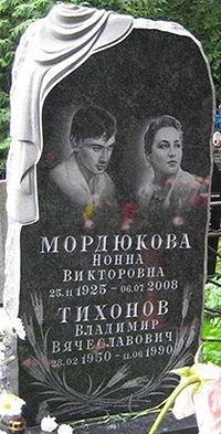 | Нонна Викторовна похоронена на Кунцевском кладбище Москвы рядом с сыном |