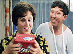 | В роли управдома Варвары Сергеевны Плющ с Юрием Никулиным, «Бриллиантовая рука», 1968 год. «Это вам — сувенир!» |