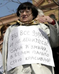 После двухлетнего принудительного «лечения» Новодворская стала седой, но не одумалась — напротив, бесповоротно ушла в бунт, во фронду. Вечная оппозиционерка, она не смогла ужиться ни с одним режимом: когда так ненавистный ей коммунистический пал, переключилась на его могильщика Горбачева и в октябре 1990-го была привлечена к ответственности за оскорбление президента СССР и государственного символа (публично сожгла красный флаг). Чуть позже, в 1995-м, ей инкриминировали уже оскорбление президента России, а причина — листовка, где говорилось: «Борьбу с фашизмом надо начинать с главного палача — оберфашиста Ельцина»...