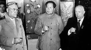 ![]() Верной дорогой идете, товарищи! Николай Булганин и Никита Хрущев с Мао Цзэдуном в Пекине. Октябрь 1954 года |