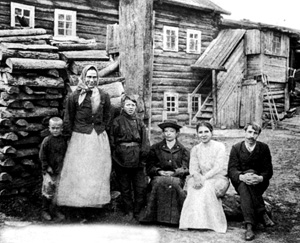 | Писатель с первой женой Верой Абрамовой (вторая справа) в архангельской ссылке. 1911 год |
