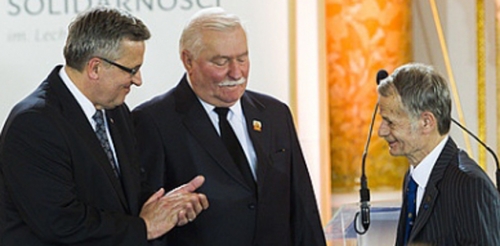 | С президентом Польши Брониславом Коморовским и экс-президентом Польши, первым руководителем «Солидарности» Лехом Валенсой |