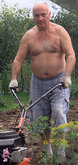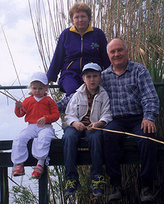 ![]() С женой Валентиной Петровной и внуками Антошей и Софийкой на даче |
