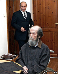 ![]() Журнал «Шпигель» как-то поинтересовался: не смущает ли Александра Исаевича тот факт, что свою Государственную премию за «Архипелаг ГУЛАГ» он получил из рук чекиста Путина. «Путин же не работал начальником в ГУЛАГе...» — удивился классик |