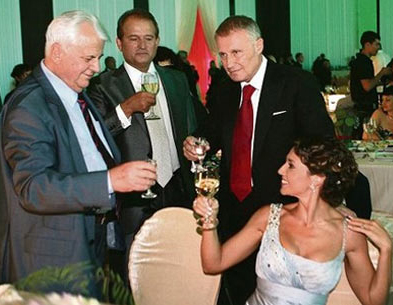 Первый Президент Украины Леонид Кравчук, бизнесмен, политик и заядлый болельщик Виктор Медведчук, Григорий Суркис и супруга Медведчука телеведущая Оксана Марченко