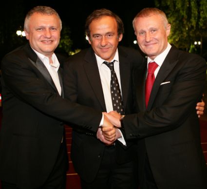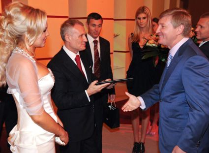 Чета Суркисов принимает поздравления от президента футбольного клуба «Шахтер» Рината Ахметова