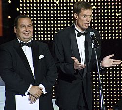 | Сладкая парочка Владимир Данилец и Владимир Моисеенко не перестают шутить по поводу телевидения — иногда довольно удачно |