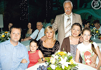 | Глава семьи с сыном от первого брака Артемом Антоновым (журналист), внучкой Софьей, невесткой Лидией, второй женой Мариной и дочерью Варварой |