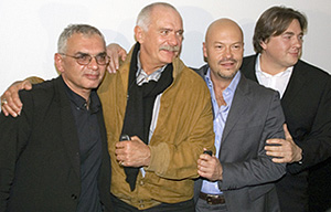 | С Никитой Михалковым, Федором Бондарчуком и Константином Эрнстом после премьеры семисерийного телефильма «Тихий Дон» (Бондарчук-младший завершил дело отца, смонтировав его картину), 2006 год Фото «ИТАР-ТАСС» |