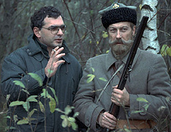 | С Олегом Янковским во время работы над мистической драмой «Цареубийца», 1991 год |