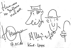 ![]() Автограф Никулина и Шуйдина Кунцевич бережно хранит в своем домашнем архиве |
