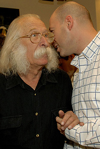 Ну а сами "динозавры" Сергей Поярков и Олег Пинчук удачно дополняли друг друга. По словам Пинчука, он и Поярков большие и добрые динозавры: "Мы не питаемся плотью, мы кушаем верхние листочки с самых высоких деревьев". Спокойный, неторопливый Пинчук пришел с трехлетней дочкой Оксаной и женой Лилией. Сергей же приехал на своем знаменитом огромном черном джипе. Машина с номерами "Поярков" стояла прямо у входа в галерею, привлекая всеобщее внимание.