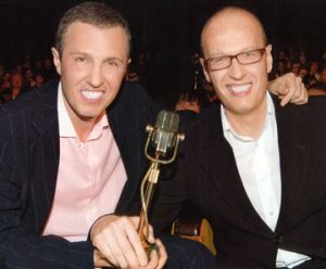 | Игорь с братом-близнецом Вадимом — известным теле- и радиоведущим |