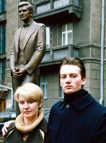 | Анатолий с матерью Светланой на фоне киевского памятника Анатолию Соловьяненко. «Мы с мамой много сделали для того, чтобы увековечить память отца» |