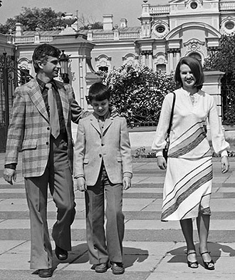 | Анатолий Соловьяненко с супругой Светланой и старшим сыном Андреем у Мариинского дворца в Киеве. «В свое время Андрей неплохо играл на фортепиано, даже окончил школу имени Лысенко для одаренных детей при консерватории, но на этом его творческий путь прервался» |