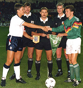 | Матч Англия — Германия, посвященный 25-летию победы сборной Англии на чемпионате мира-1966, Лондон, «Уэмбли», 1991 год. Судьи: Сергей Хусаинов, Алексей Спирин и Вадим Жук, капитаны команд: Гари Линекер и Лотар Маттеус |
