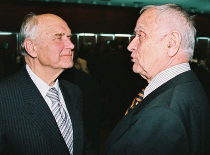 ![]() Первый Президент впервые вывел в свет свою семью в почти полном составе: слева жена Антонина Михайловна, стоят — сын Александр, невестка Елена, внуки Андрей и Маричка ![]() Самый сильный человек планеты Василий Вирастюк с интересом рассматривал выставочные экспонаты ![]() Поздравить Леонида Макаровича пришла известный политик и архитектор Лариса Скорик ![]() Фотовыставку, запечатлевшую жизненный путь Леонида Кравчука, удачно дополняет его недавно вышедшая монография «Маємо те, що маємо», которую приобрел и председатель Верховного Совета Владимир Литвин ![]() Народные депутаты от Партии регионов Анна Герман и Инна Богословская пожелали имениннику многая лета, а Герман преподнесла в подарок старинное перо и посоветовала именно им подписывать государственные бумаги ![]() Бог в помощь! Патриарх Киевский и всея Руси-Украины Филарет (слева) тоже почтил своим вниманием юбилей экс-Президента ![]() Президент Академик наук Украины Борис Евгеньевич Патон делился впечатлениями от выставки с Дмитрием Гордоном ![]() Когда-то академик НАН, ныне директор Украинского института национальной памяти Игорь Юхновский и поэт Дмытро Павлычко были ярыми оппонентами Кравчука |