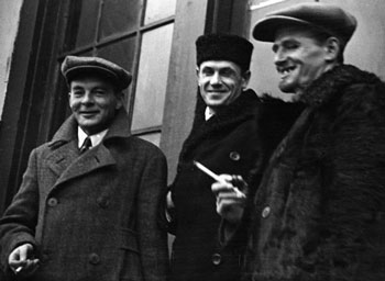 | Борис Бабочкин (в центре) с создателями фильма «Чапаев» Георгием и Сергеем Васильевыми. «Братья Васильевы» — творческий псевдоним, они не были кровными родственниками» |