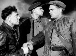 | Борис Бабочкин (справа) в роли инженера Родионова, «Непобедимые», 1942 год |