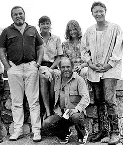 | Юлиан Семенов с дочерьми Дарьей и Ольгой, Андреем Мироновым и Львом Дуровым на съемках фильма «Сказка странствий», Ялта, 1982 год |