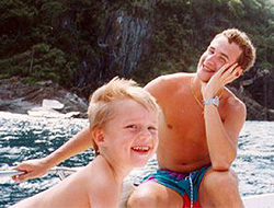 Мы с ним все время поднимались в шесть утра и тренировались. Мама не возражала, она сама профессиональная спортсменка, еще похлеще меня, такая боевая. Гнула его, и он в шесть лет сидел на всех шпагатах - на продольном, на поперечном. Сидел, руки разогнуты. Это мама все сделала.