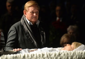 | Близкий друг Ольги Аросевой Роман Виктюк прощается с ней в Театре сатиры, 18 октября 2013 года |