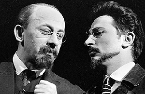 | Евгений Евстигнеев (Анатолий Луначарский) и Игорь Кваша (Яков Свердлов) в спектакле театра «Современник» «Большевики», 1967 год |