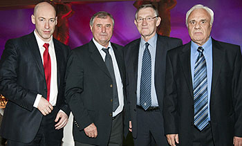 | Дмитрий Гордон, Анатолий Бышовец, Семен Альтман и Валерий Поркуян. «А чем еще можно дышать, кроме футбола? Только футболом» Фото Феликса РОЗЕНШТЕЙНА |