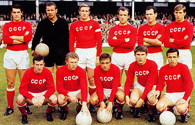 | Сбор ная СССР перед матчем со сборной Венгрии на чемпионате мира по футболу, 1966 год. Верхний ряд: Валерий Воронин, Лев Яшин, Альберт Шестернев, Василий Данилов, Йожеф Сабо, Владимир Пономарев. Нижний ряд: Игорь Численко, Анатолий Банишевский, Валерий Поркуян, Эдуард Малофеев, Галимзян Хусаинов |
