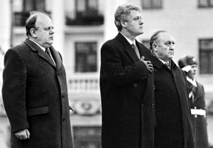 | С президентом США Биллом Клинтоном и премьер-министром Беларуси Вячеславом Кебичем, Минск, 1993 год. «Визит Клинтона — это потрясающая история: благодаря ей Беларусь широко миру известна» |