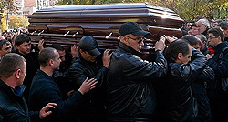 | Ни прессу, ни просто любопытных на территорию Ваганьковского кладбища не пустили. В последний путь русского мафиози провожали только родные, близкие и братва. Братвы, кстати, собралось около 500 человек |