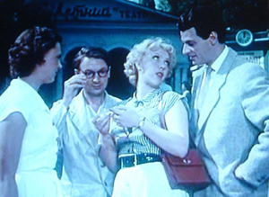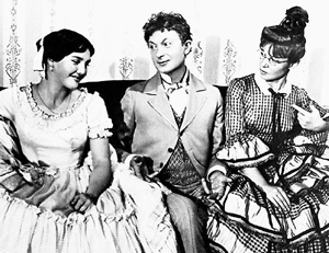| В киноленте «Она вас любит» Георгий Вицин сыграл скромного романтика Канарейкина. Справа — Тамара Носова и Александр Ширвиндт, 1956 год |