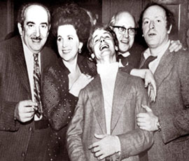 | Александр Галич, Галина Вишневская, Михаил Барышников, Мстислав Ростропович и Иосиф Бродский в ресторане «Русский самовар» на Манхэттене, США, 1974 год. «Русский самовар» — не столько ресторан, сколько центр русскоязычной культуры, в создание которого вложили свои средства Барышников и Бродский |