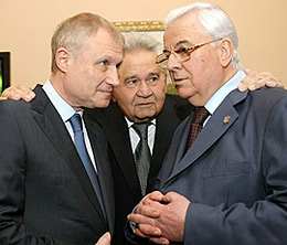 | С Григорием Суркисом и Леонидом Кравчуком. «Никакой ссоры с Леонидом Макаровичем у нас не было, мы вообще никогда не ссорились. Наши отношения всегда были и остаются ровными, хотя мы часто оказывались по разные стороны баррикад» |