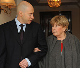 | Дмитрий Гордон: «От чего, Ольга Александровна, у женщины могут блестеть так глаза?». Ольга Аросева: «Очевидно, от встречи с вами...» Фото Феликса РОЗЕНШТЕЙНА |