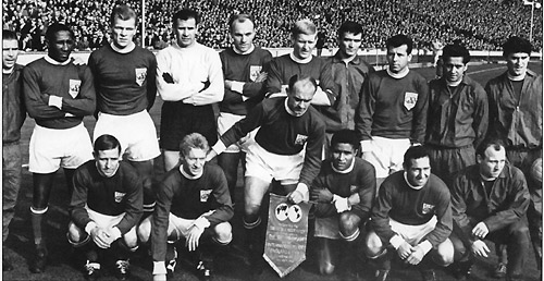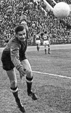 | Сборная мира перед матчем, посвященным 100-летию британского футбола, 1963 год. Ференц Пушкаш, Джалма Сантос, Святопулк Плускал, Лев Яшин, Ян Поплухар, Карл-Хайнц Шнеллингер, Милутин Шошкич, Раймон Копа, Луис Эйсагирре, Йозеф Масопуст, Джеймс Ба стер, Де нис Лоу, Альфредо Ди Стефано, Эйсебио, Франсиско Хенто, Уве Зеелер. В этом же году голкипер сборной СССР и московского «Динамо» получил «Золотой мяч» как лучший футболист Европы и по сей день остается единственным вратарем, удостоенным этой престижной награды |